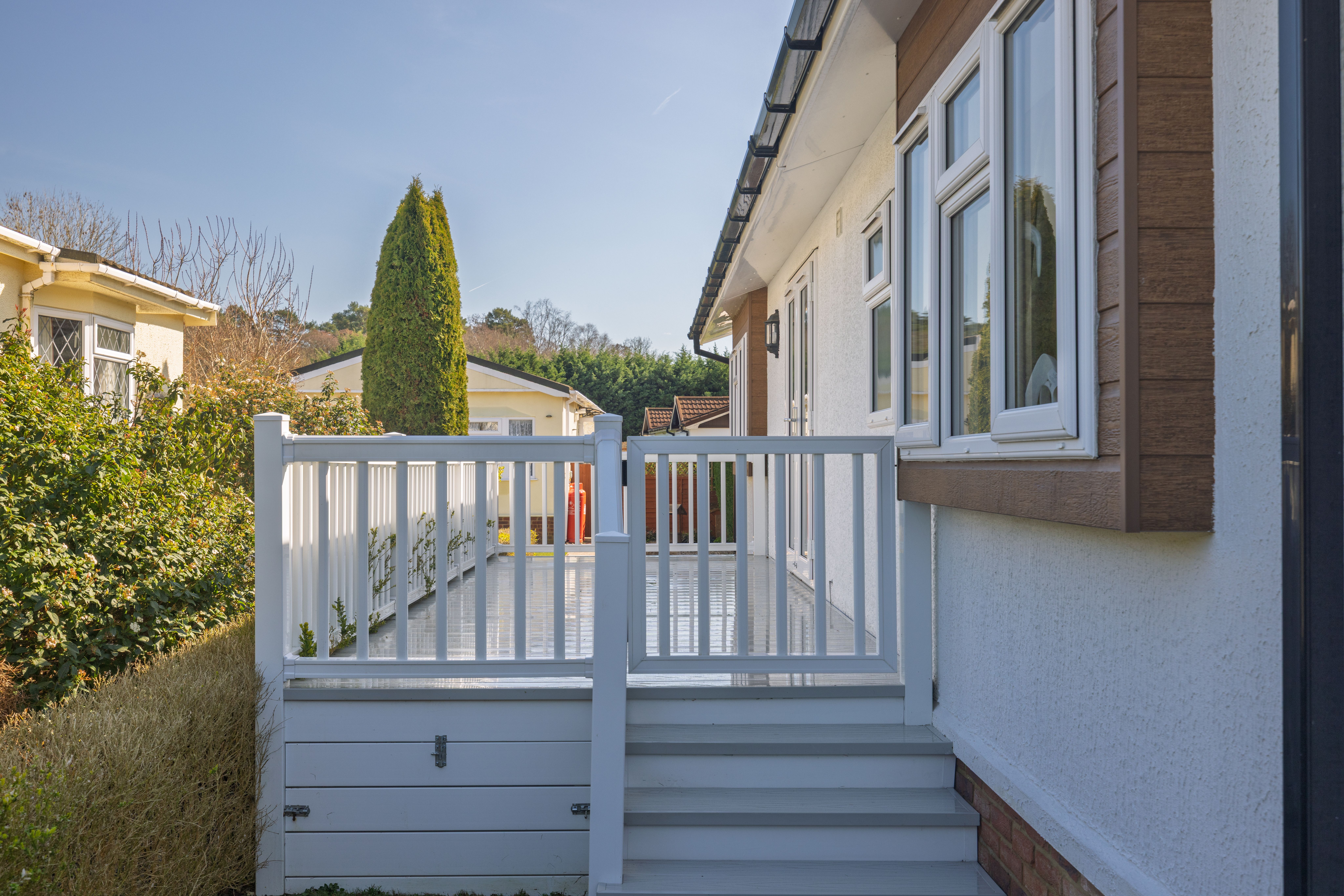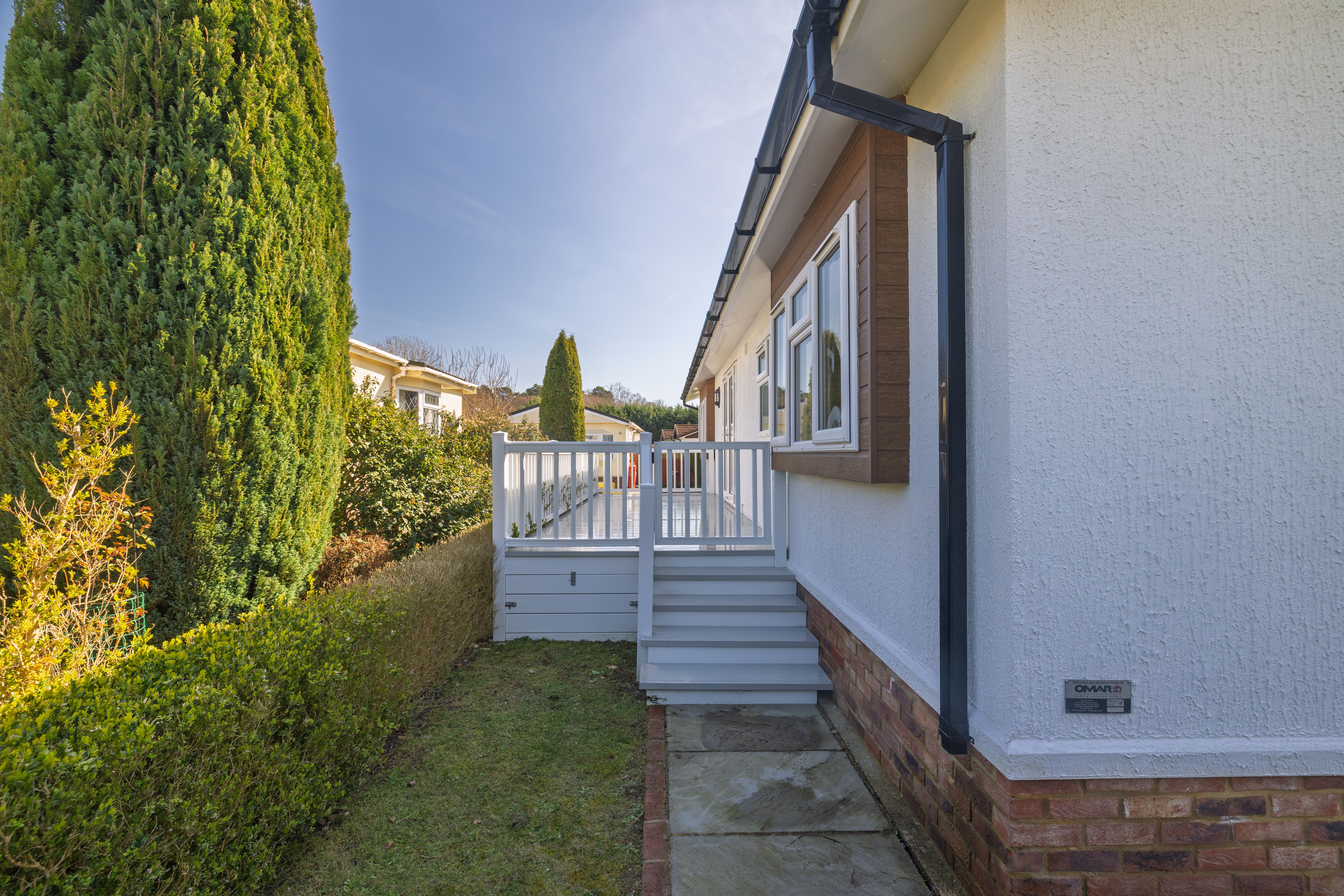 Outside, the fully landscaped garden is mainly laid to lawn, with a raised terrace to the rear and paved pathways around the property.